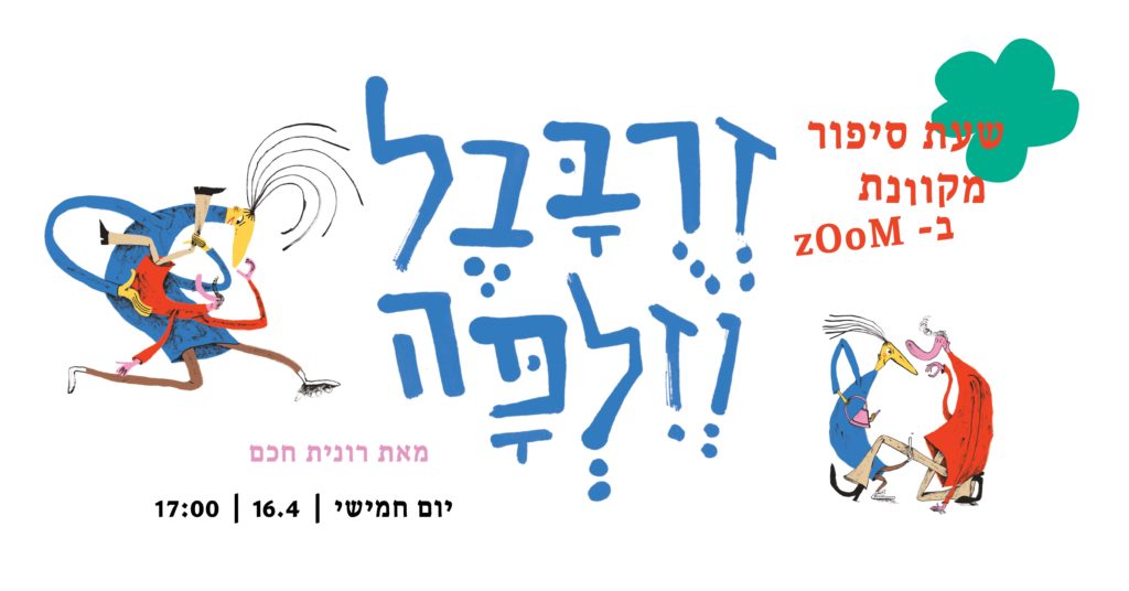 שעת סיפור מקוונת לילדים ~ "זרובבל וזלפה" מאת רונית חכם. היום! יום חמישי, 16.4 בשעה 17:00. בתכנית: שעת סיפור, סדנת איור, מוזיקה חיה לילדים! פתוח לקהל הרחב ללא תשלום. קישור למפגש: https://zoom.us/j/926547441