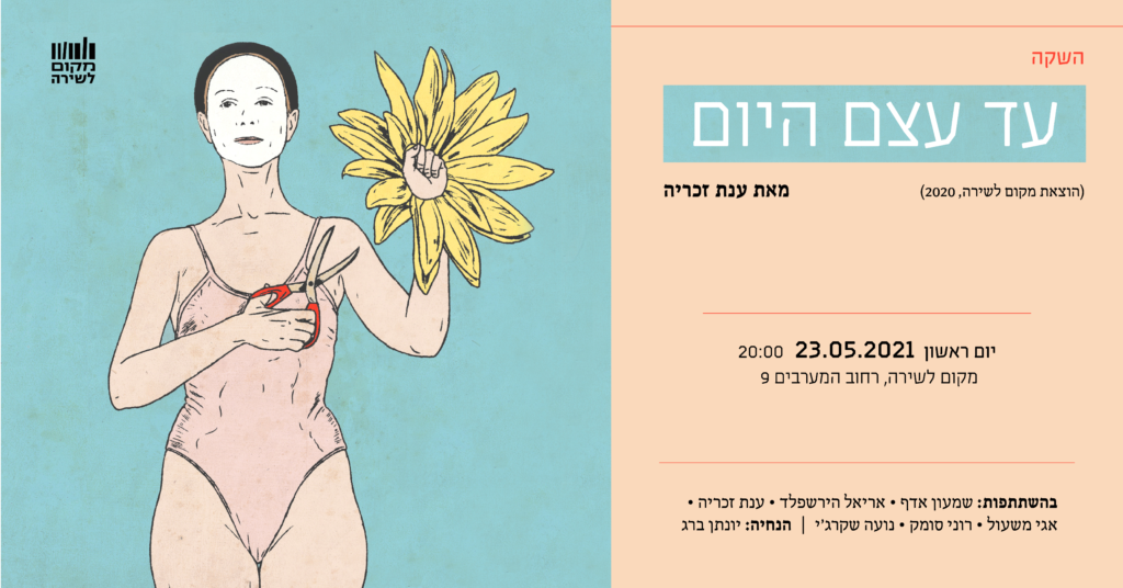 – ה ש ק ה – "עד עצם היום" מאת ענת זכריה יום ראשון // 23.05.2021 // 20:00 // "מקום לשירה", רחוב המערבים 9 אֶנְגֹּס בְּמַה שֶּׁהָיָה שָׁלֵם וְאֶשְׁכַּב לָנוּחַ לֹא רוֹצָה אַף לֹא אֶחָד גַּם לֹא לְחַשֵּׁב אֶת הַסִּכּוּיִים אֲפִלּוּ אֵיךְ פּוֹתְחִים דֶּלֶת מְסוֹבְבִים מַפְתֵּחַ אֲנִי לֹא זוֹכֶרֶת הַיָּד אוֹחֶזֶת שָׁעוֹת בְּיָדִית רֵיחַ מוֹתִי נוֹלַד מֻקְדָּם […]
