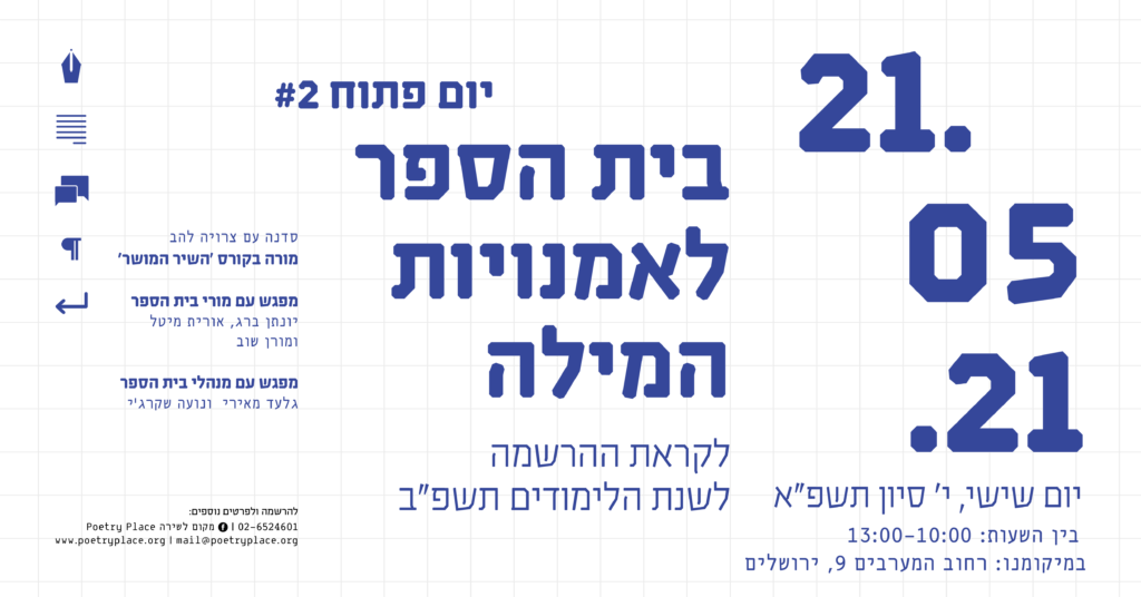יום פתוח בבית הספר לאמנויות המילה // יום שישי, 21.05.21, 13:00-10:00