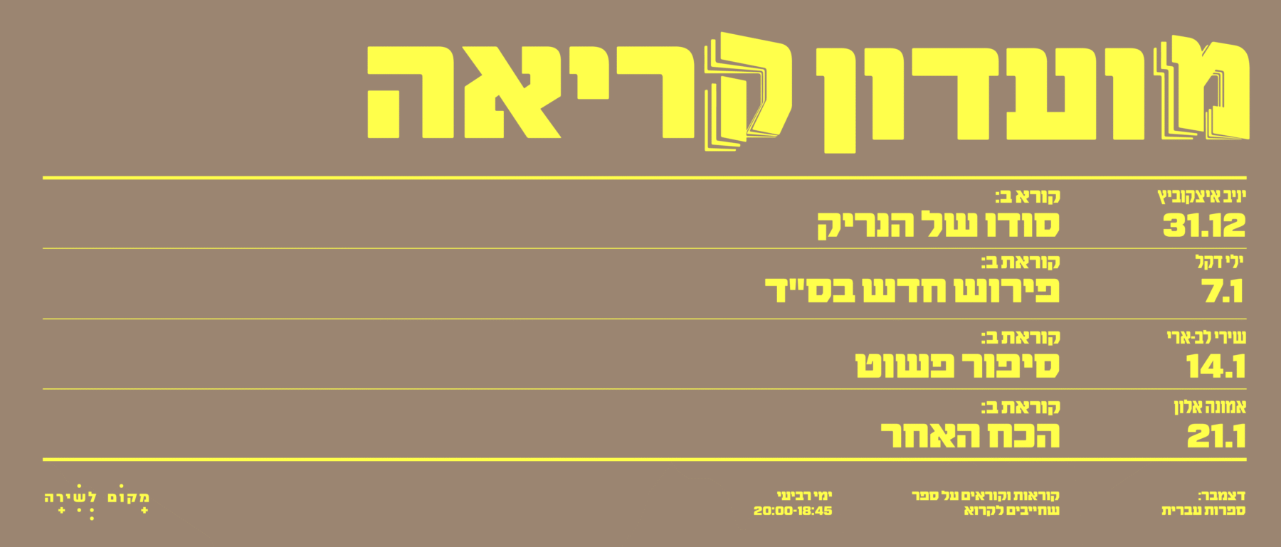 ימי רביעי בינואר | 18:45 – 20:00 | המערבים 9, ירושלים